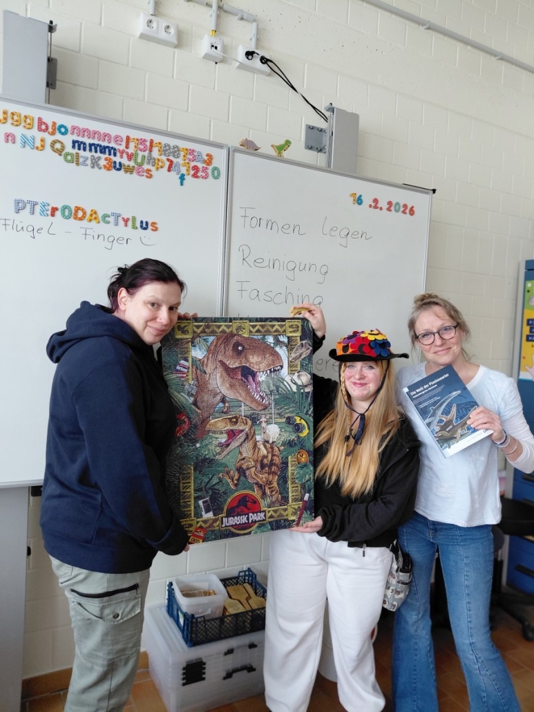Besonders aufregend war das gemeinsame Verfassen eines Briefes an einen echten Dino-Forscher. Der Paläontologe antwortete mit einem Schreiben, Autogrammen und spannender Fachliteratur über Dinosaurier – ein tolles Highlight für alle Beteiligten!